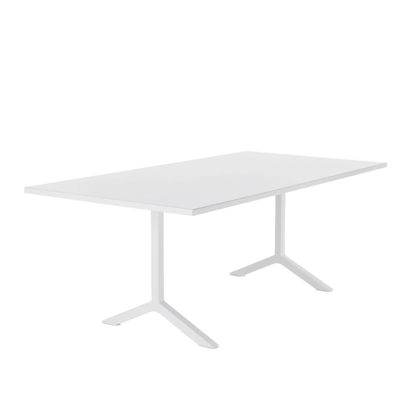 Frame in polished or texture powder coated die cast aluminium with adjustable glides. Ash Veneer, White Grey Melamine or Graphite Melamine Table Top