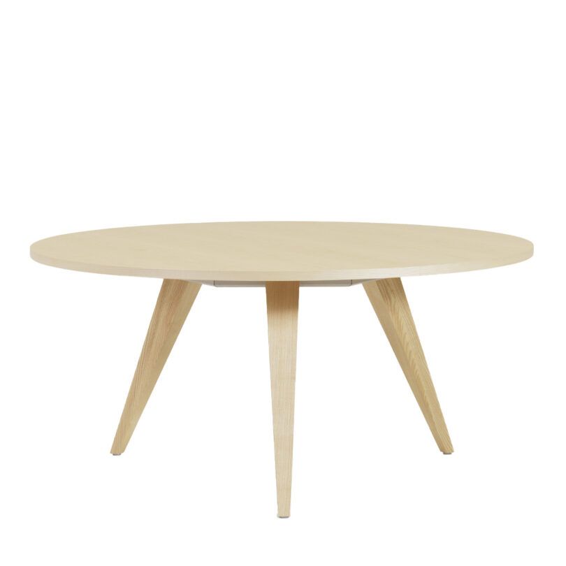 Table with solid wood legs, frame in extruded anodized aluminium.