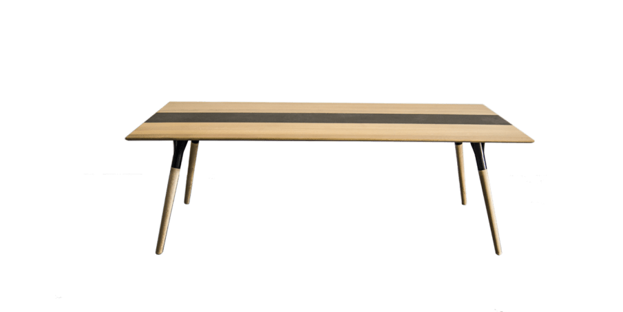 Table in solid oak or walnut. Top made by two panels of solid wood (Oak or American Walnut) and a central sheet in black oxide ceramic 10 mm thick.