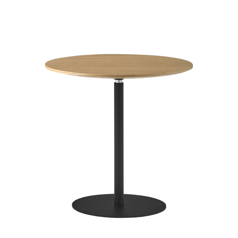 Table with top and legs in natural oak. Tops and legs are available in natural oak color, lacquered or varnished. Available in 24″, 28″ and 32″ diameter.
