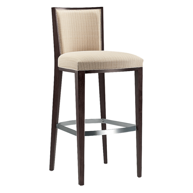 Barstool with beech frame. Upholstered seat. With kickplates.