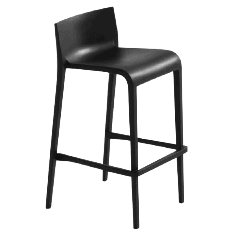 Air molded polypropylene monobloc barstool, stacks 5 high. Can only be ordered in multiples of 2, per color. MOQ 2 pcs.
