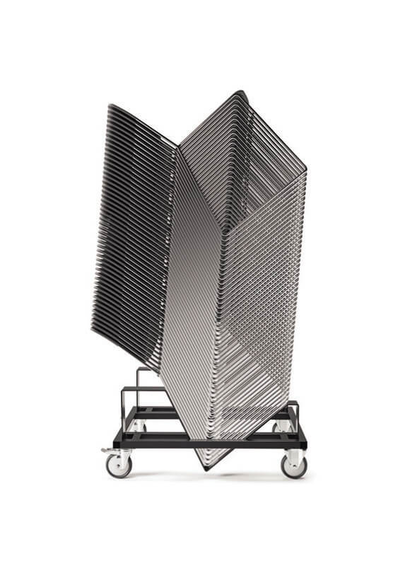 Standard trolley for transport of V-Stack chairs. Adviced maximum stacking height= 15 pieces. Wheel diameter 8 cm / 3.15″.