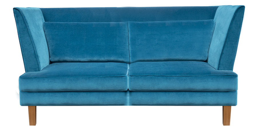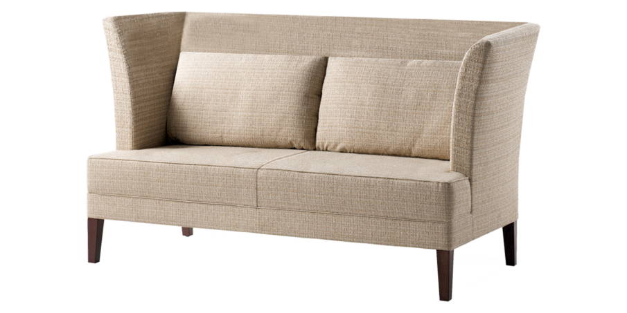 Fully upholstered high-arm 2 seater sofa with solid oak, black walnut or beech frame