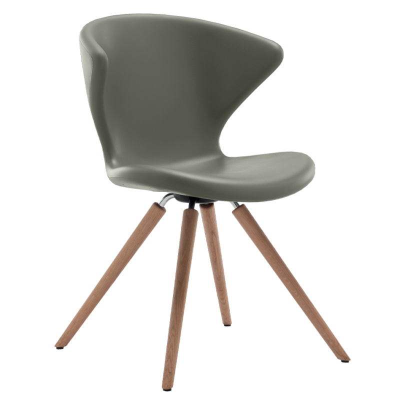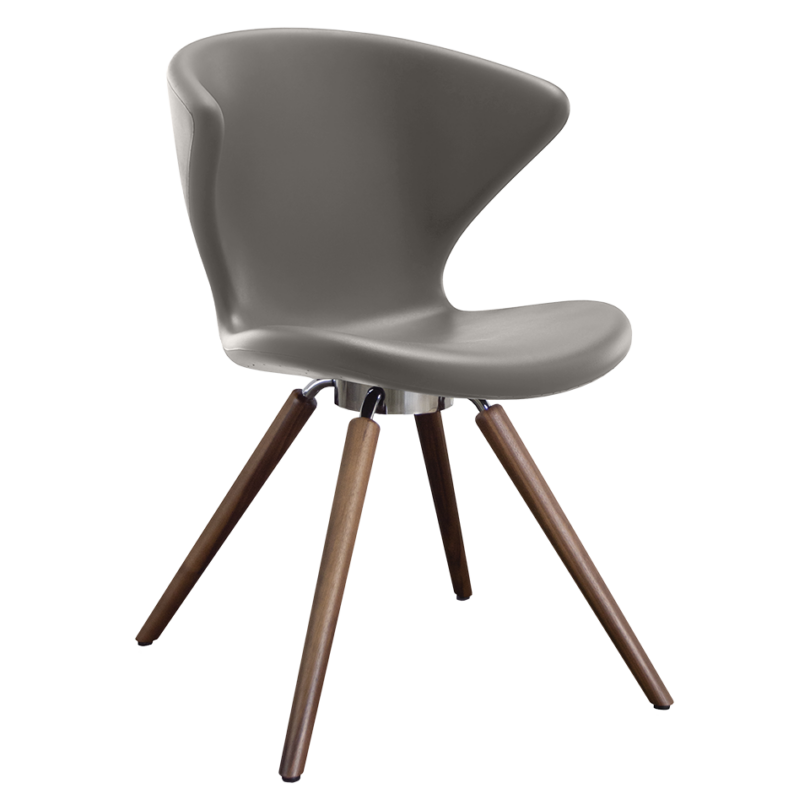 360 degree swivel chair. Polished chrome, matt chrome or lacquered steel legs with soft touch injected foam shell.
