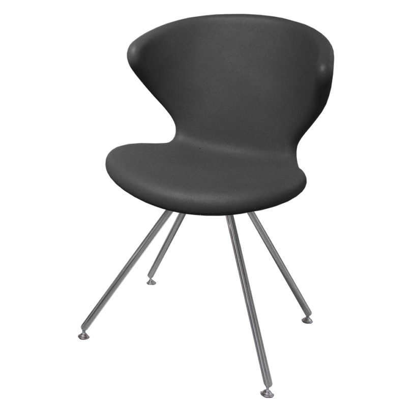 Side chair with seat in solid-coloured integral foam. Polished chrome steel frame. Indoor only.