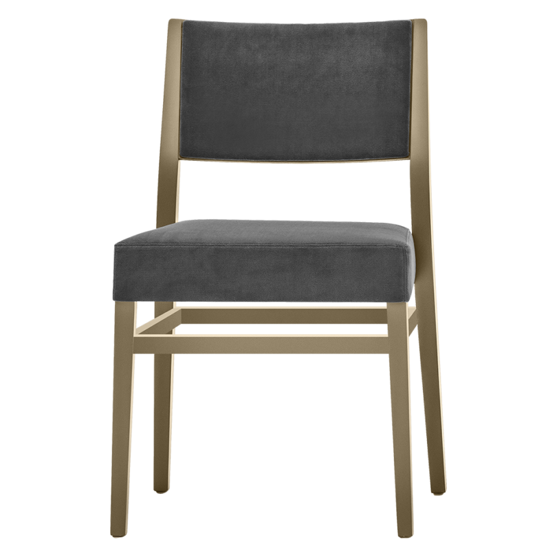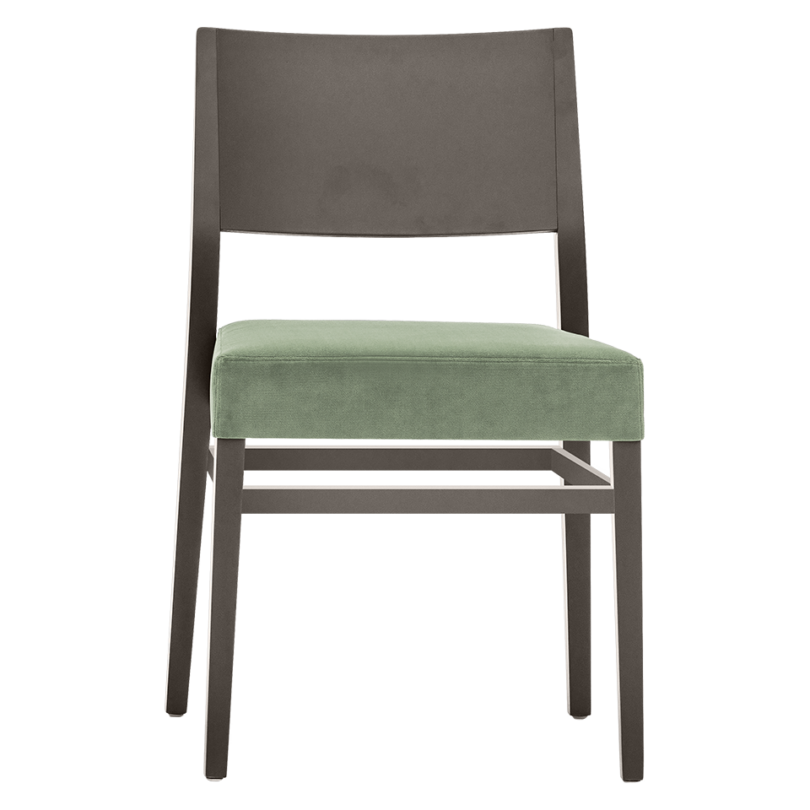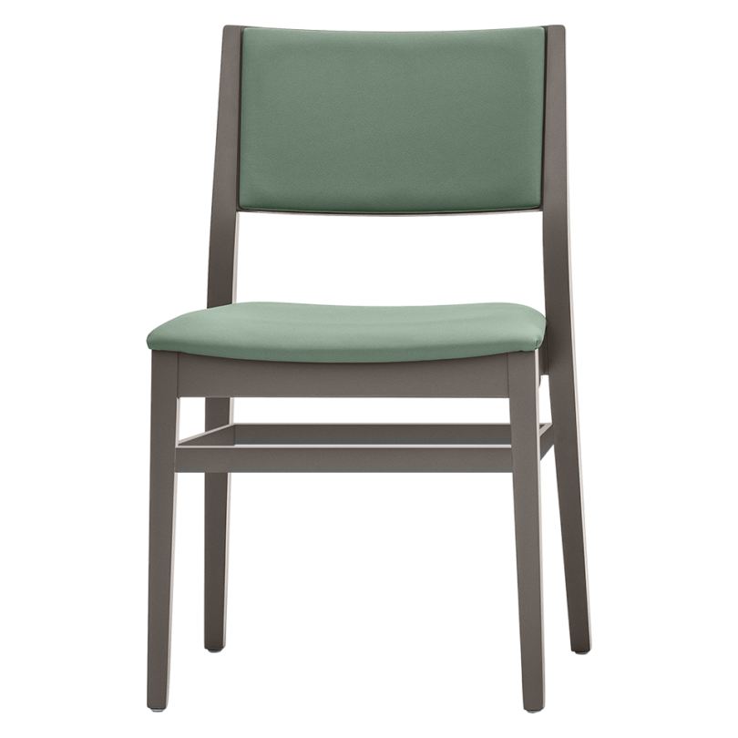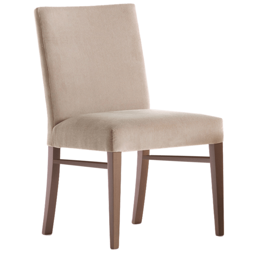 Sidechair (narrow version) with beech frame and stretchers. Seat and back upholstered. MOQ 100 pieces.