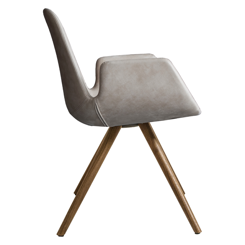 Side chair in soft touch with squared wooden legs.