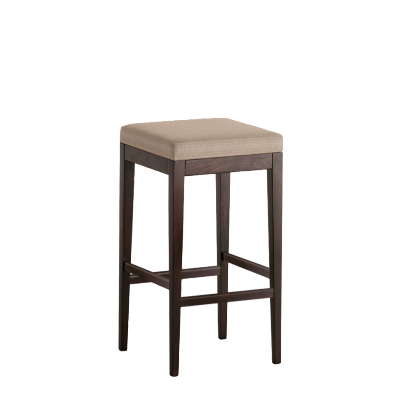 Upholstered barstool on beech wood frame.