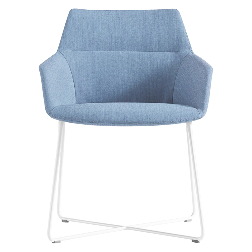 Fully upholstered arm chair on cross base. Greenguard Certified.