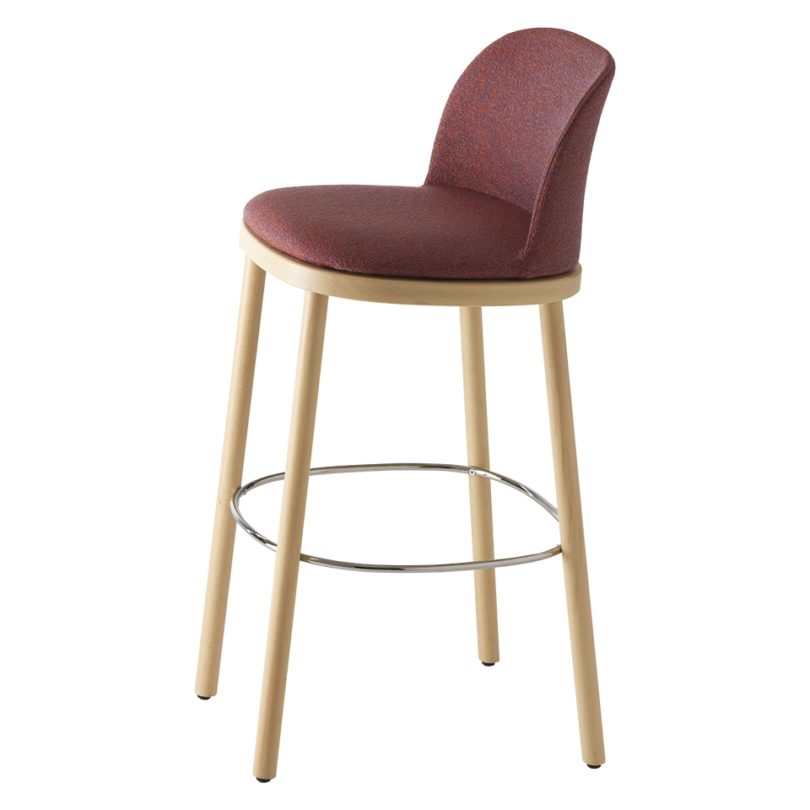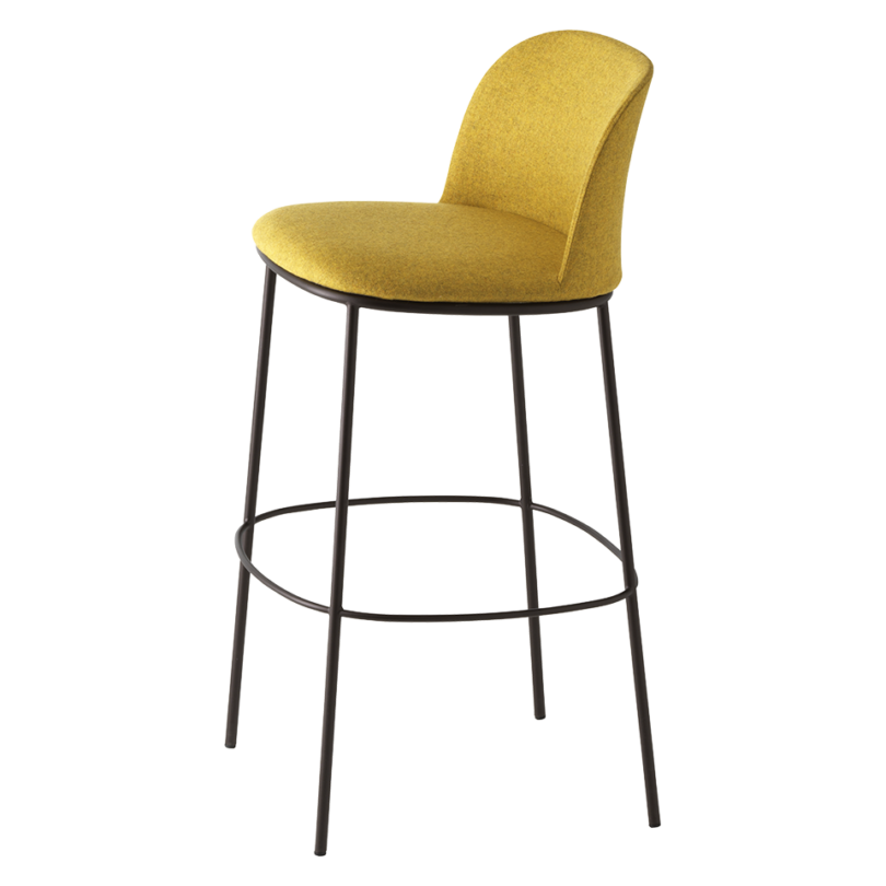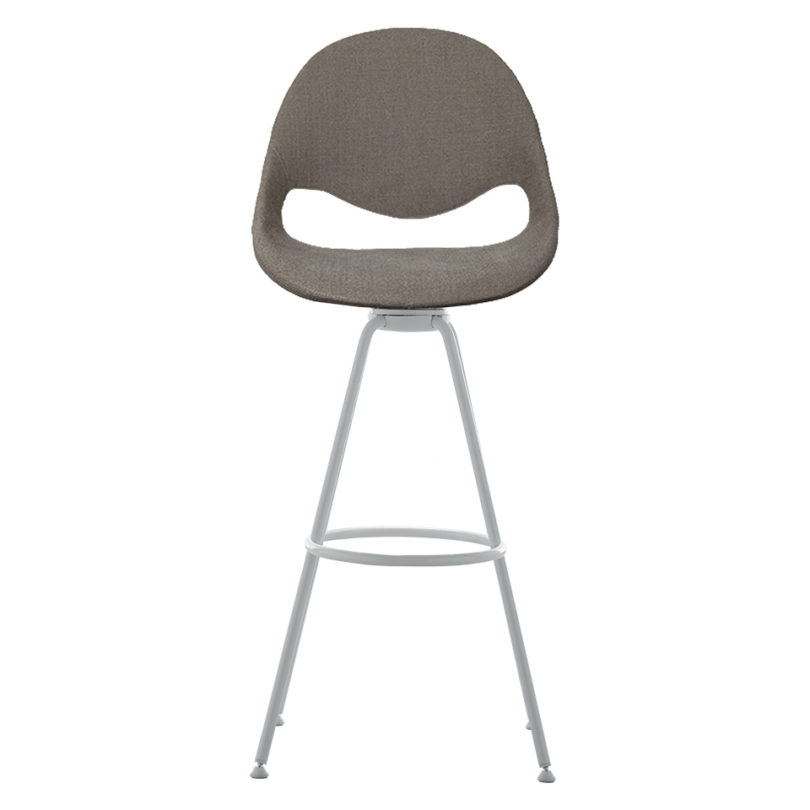 Counterstool with upholstered seat on a lacquered, matt or polished chrome base