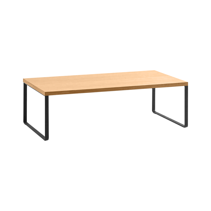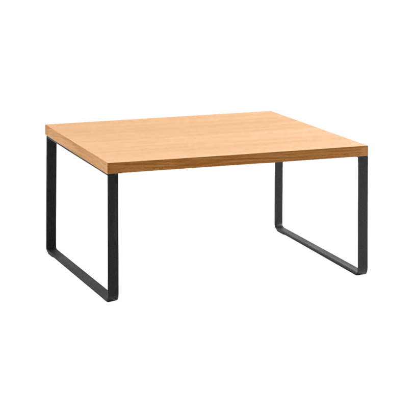 Low table 47.2″ x 31.5″ with wooden top and steel plate legs.