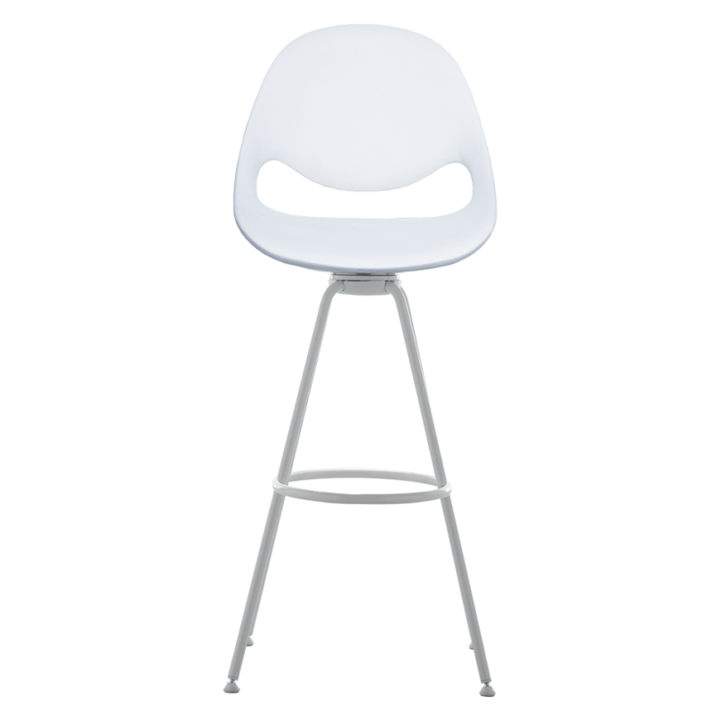 Counter stool with soft touch seat on a lacquered, matt or polished chrome base