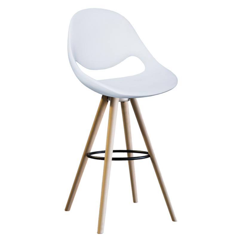 Barstool with soft touch seat on a lacquered, matt or polished chrome base