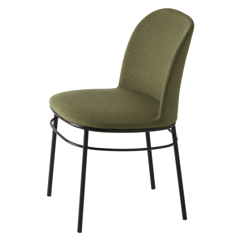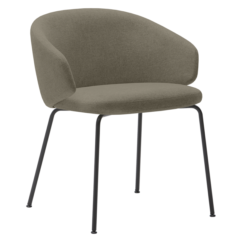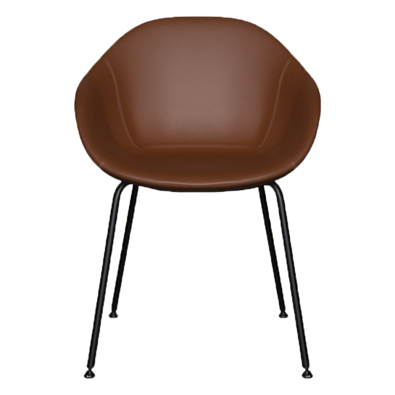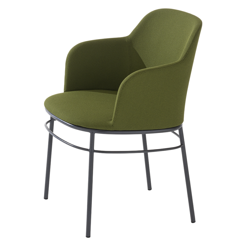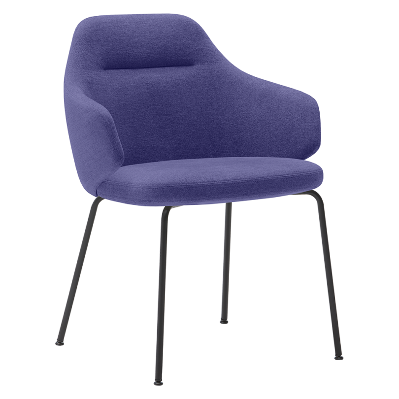 Armchair with an upholstered seat on a 4-legged matt lacquered steel base
