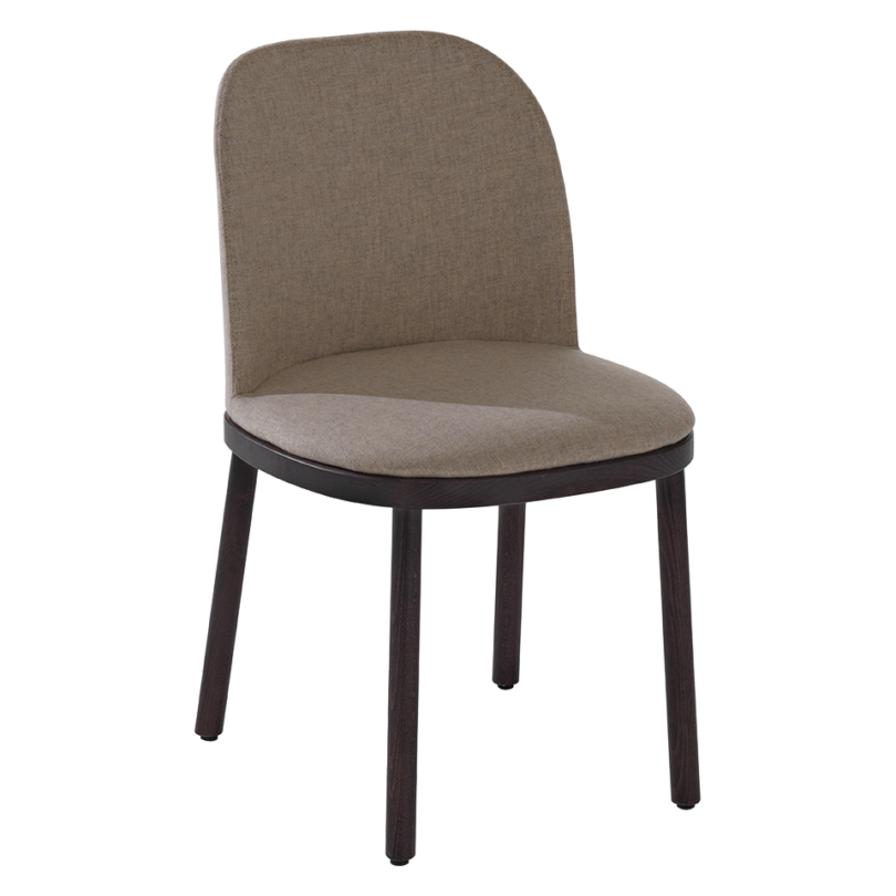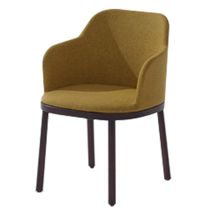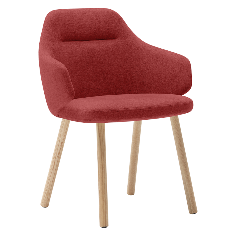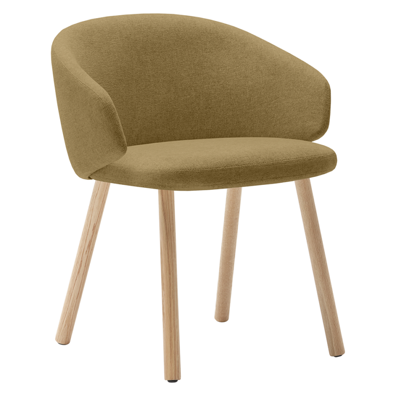 Upholstered armchair with medium backrest and 4 leg frame in solid oak, reinforced with an inner steel structure.