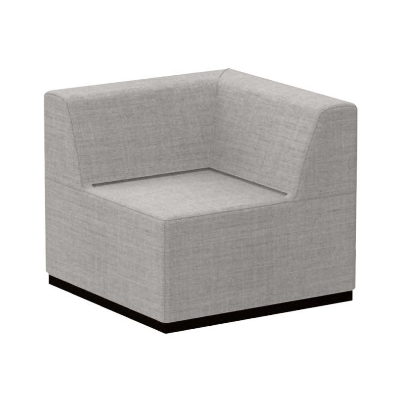 Upholstered modular seat with corner backrest measuring 80x80cm.