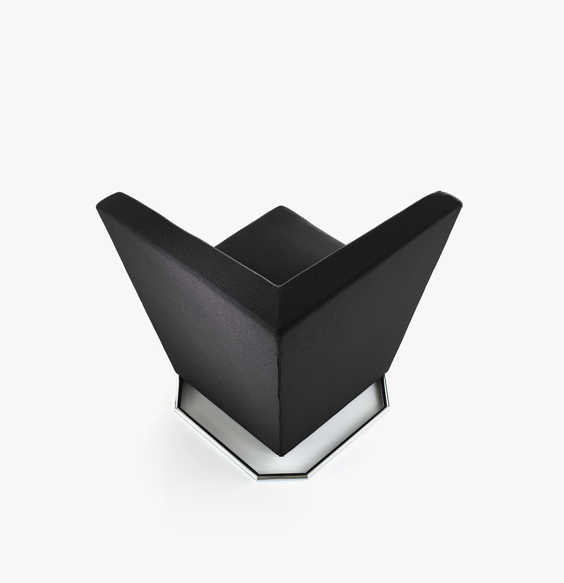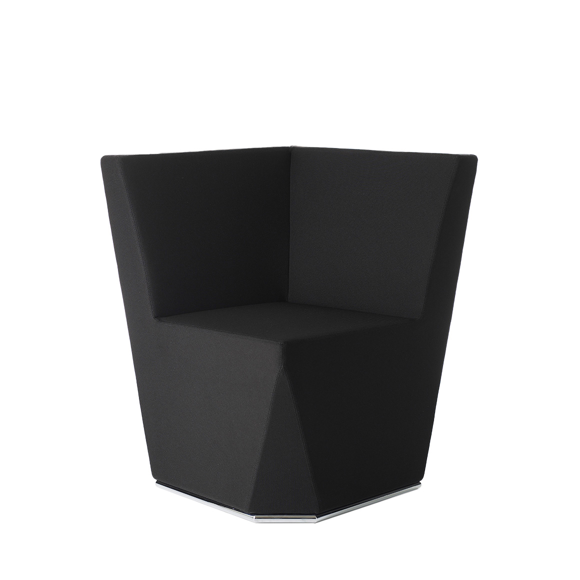 Modular sofa unit on powder coated or chromium plated cast aluminium sled base. Corner unit with upholstered seat and low rise back, and built-in magnetic linking device.