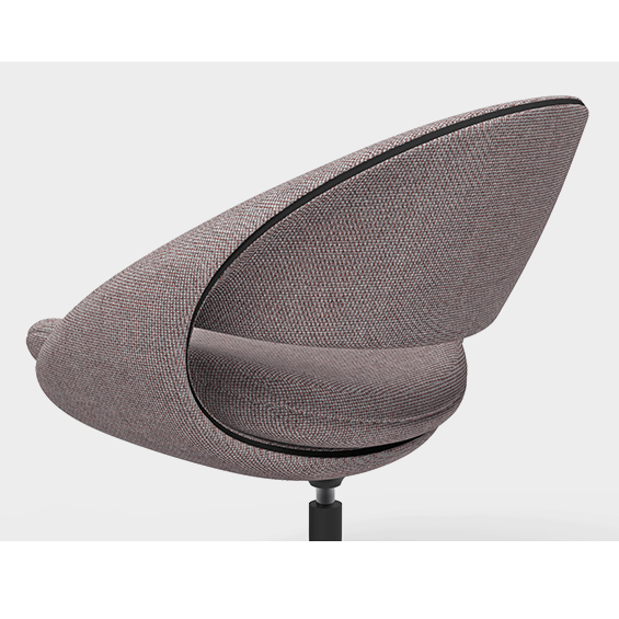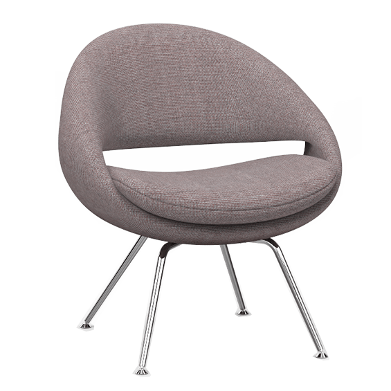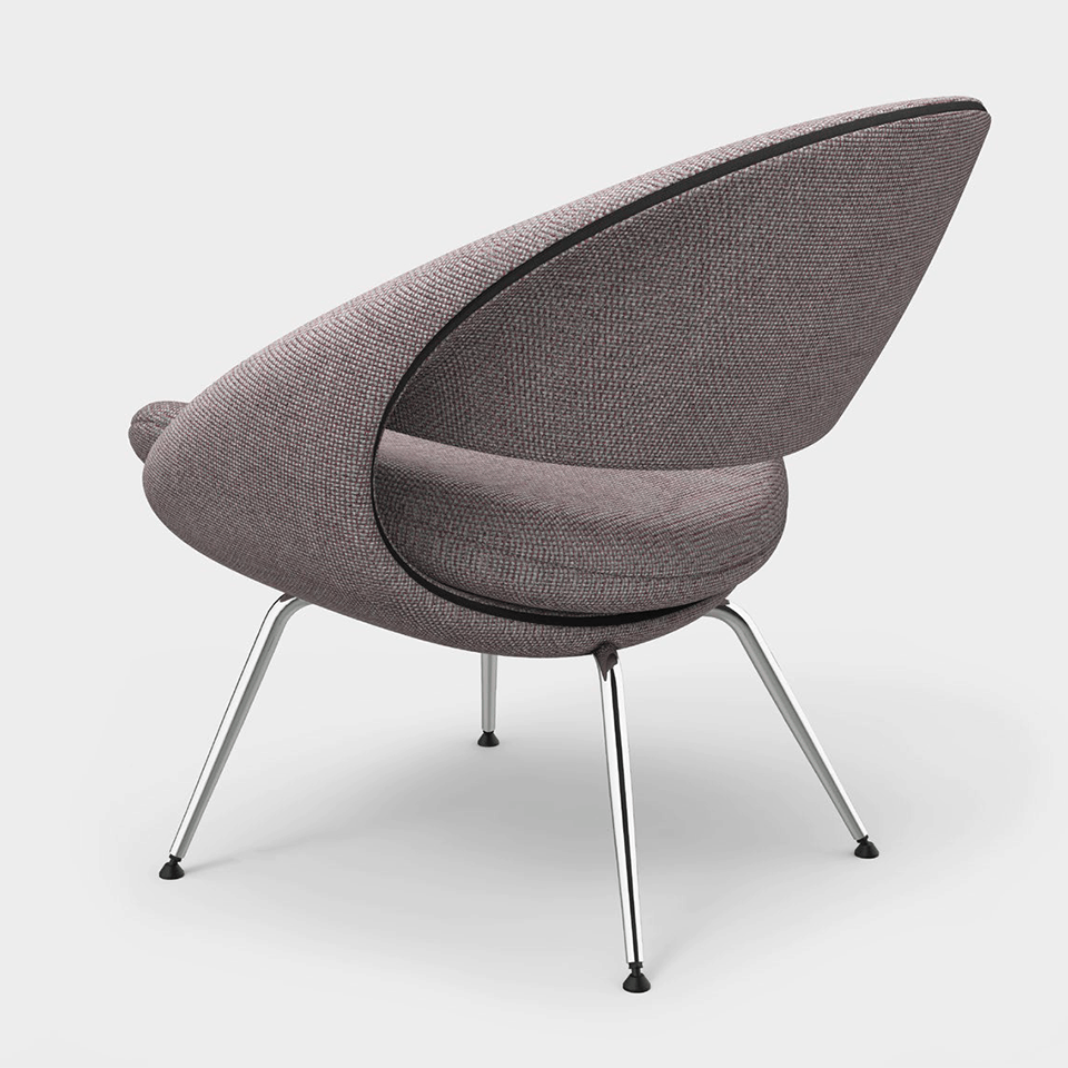 Upholstered low-back lounge chair on a polished chrome base or die cast aluminum black base, no tilt or swivel function, no tilt or swivel function. Please note that COM/COL need pre-approval.
