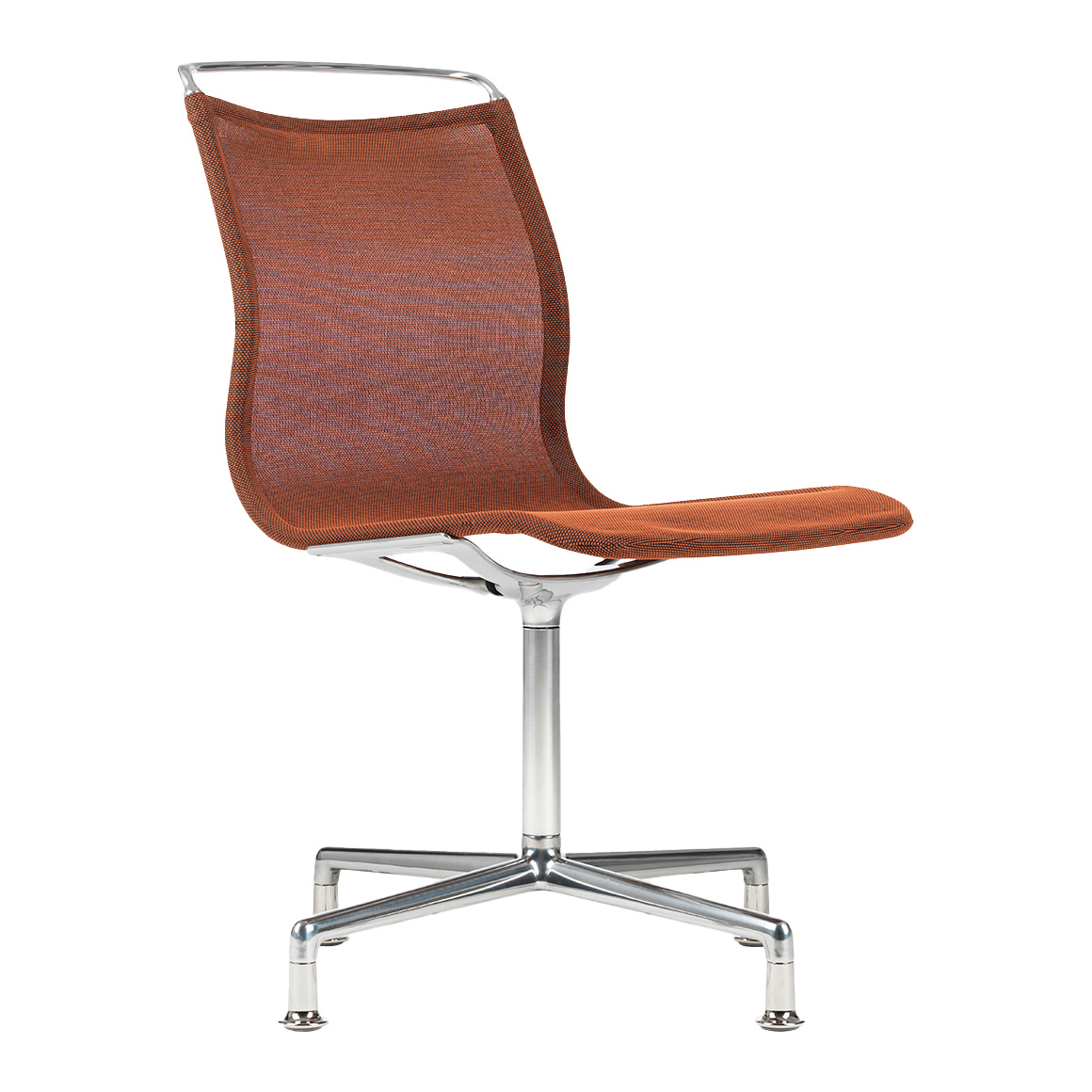 Chair with 4-feet frame of cast recycled aluminum, glides as standard. Seat shell in mesh with flocked surface. MOQ for Special Colors at 20pcs.