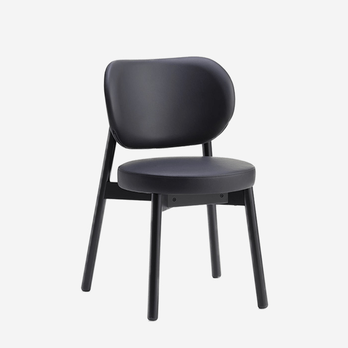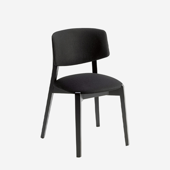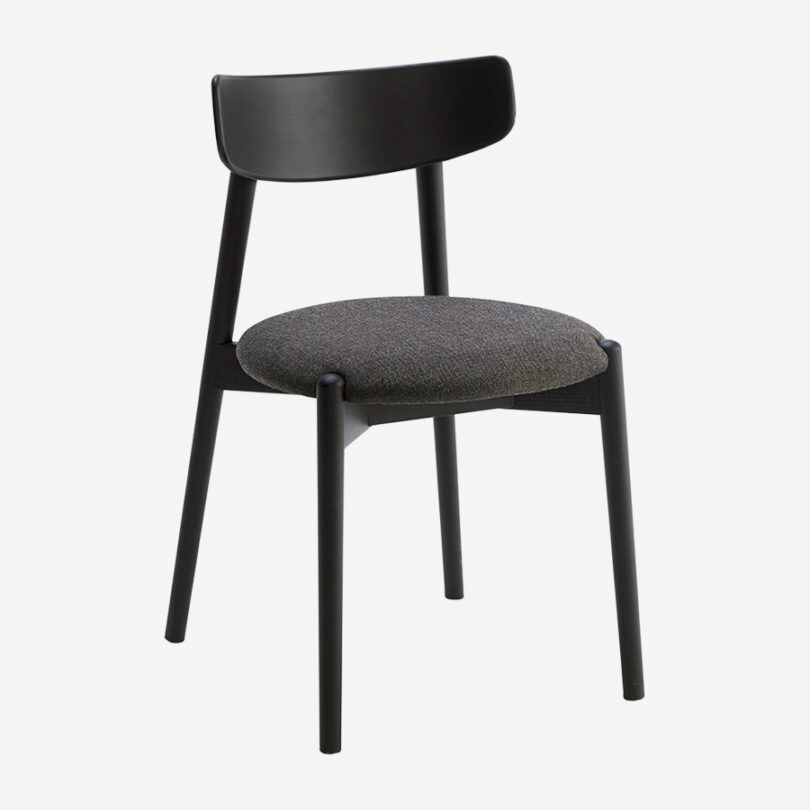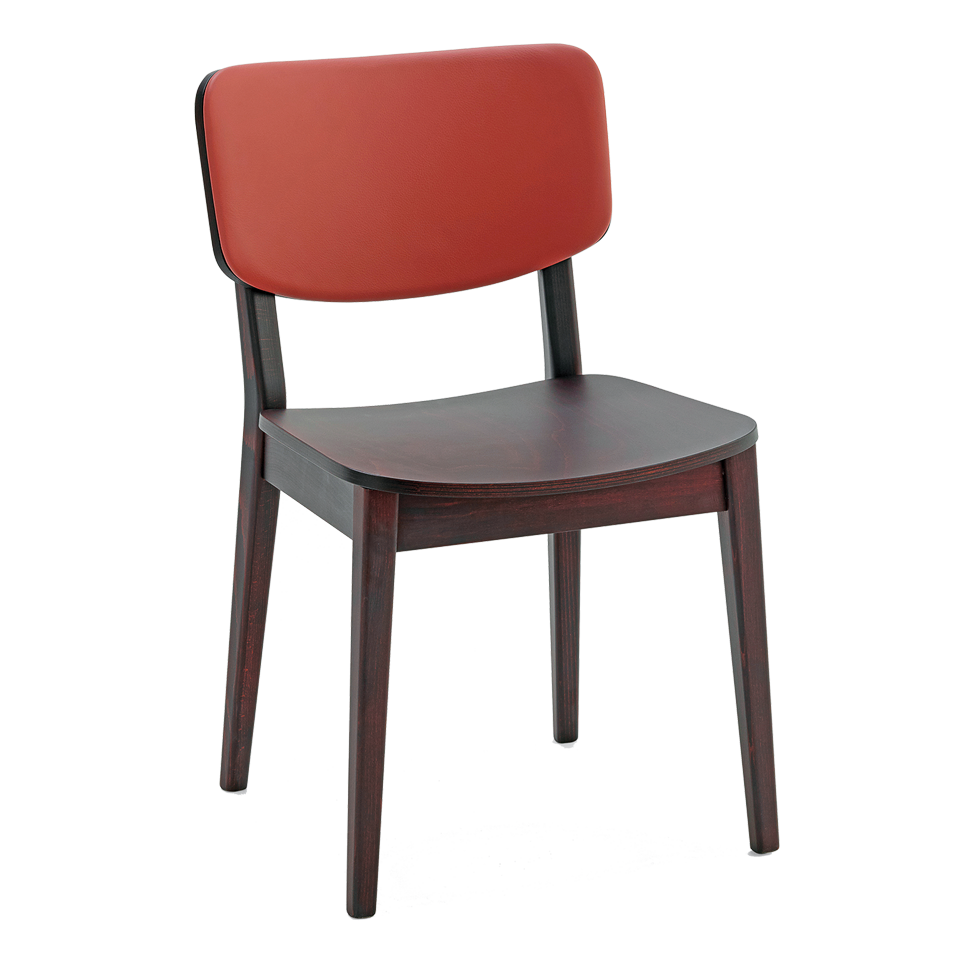 Side chair with a wooden seat and upholstered back. The frame is in solid beech.