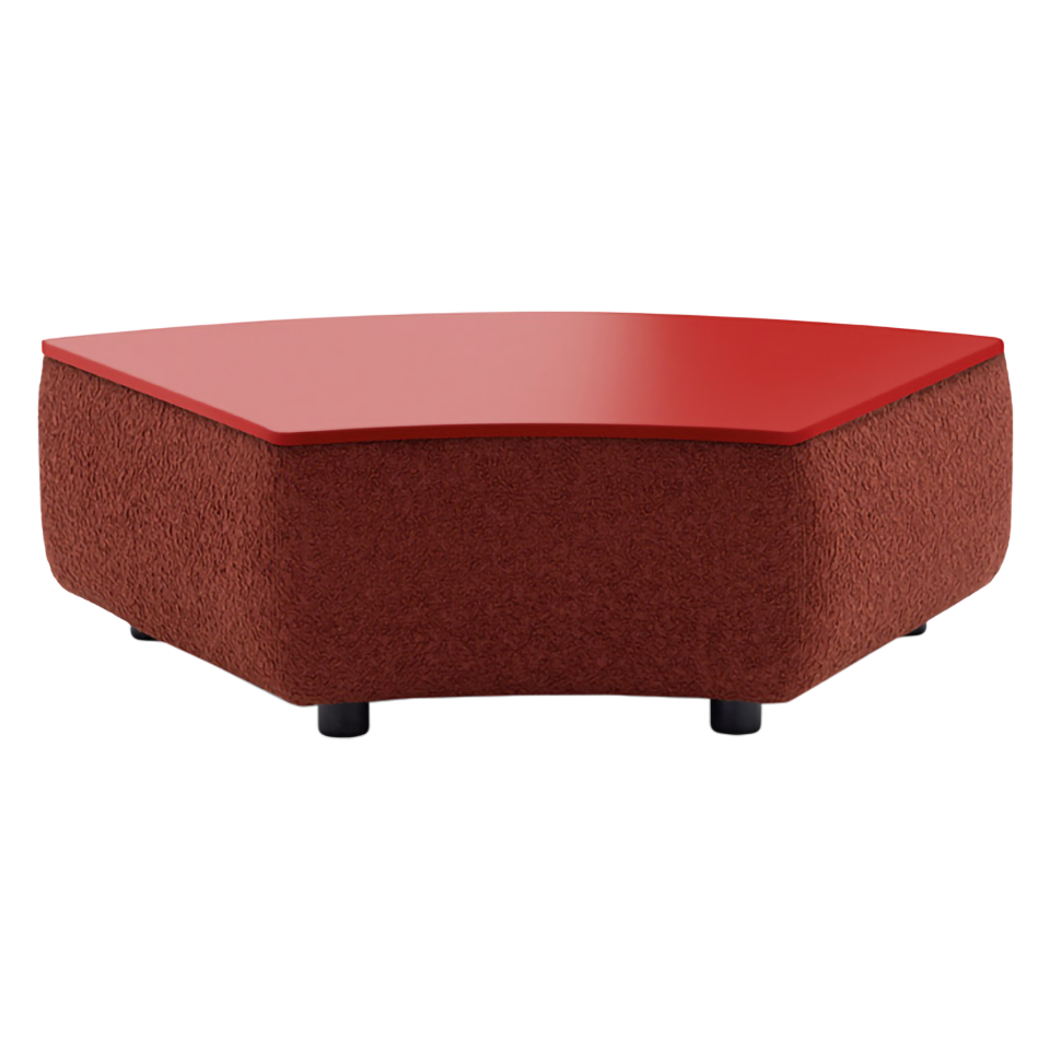 Trapezoid coffee table with black nylon legs and solid wood frame and lacquered MDF top. Feet in black nylon.