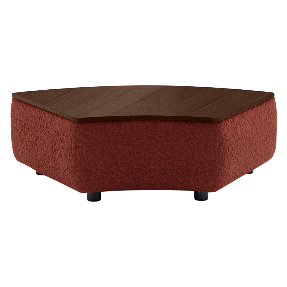 Trapezoid coffee table with black nylon legs and solid wood frame and Ash veneer top. Feet in black nylon.
