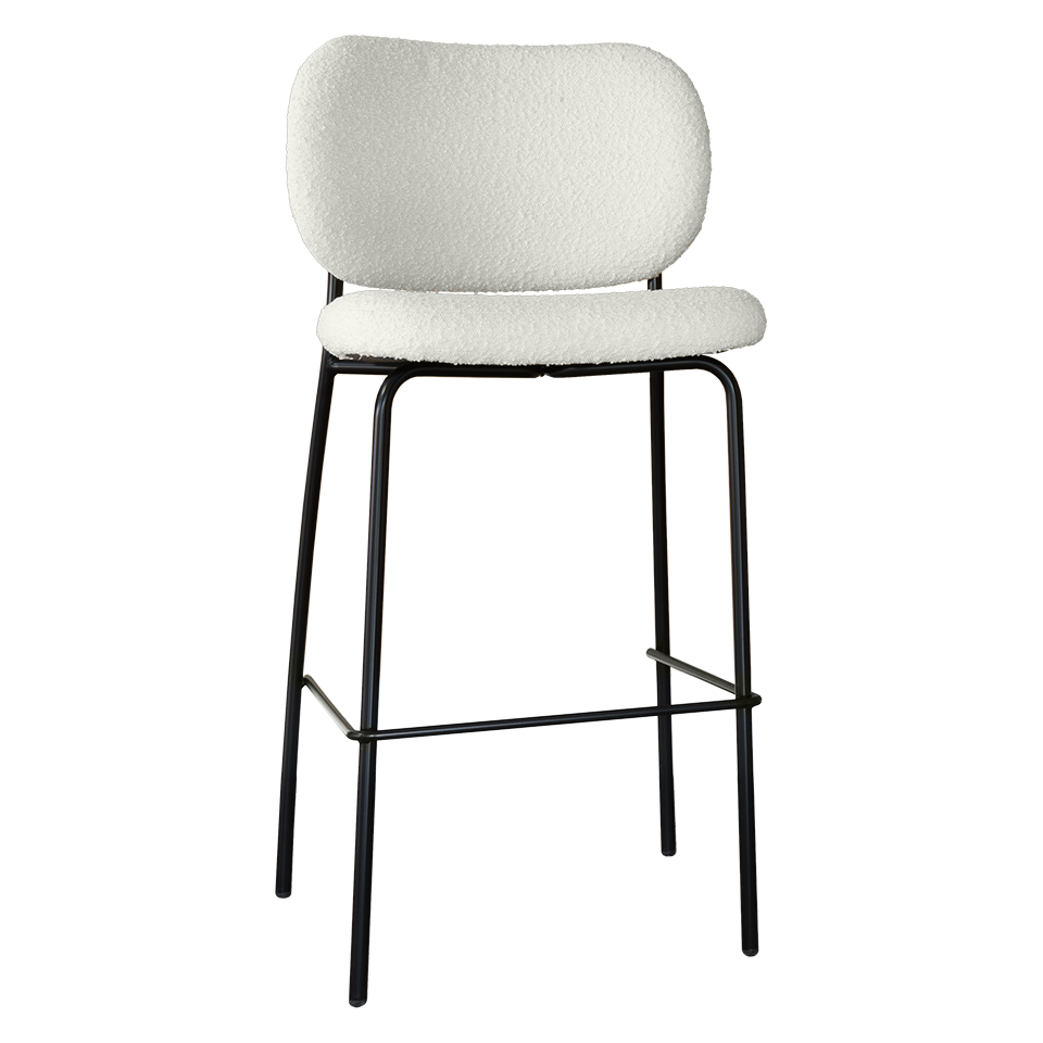 Barstool with upholstered seat and back with four leg frame in lacquered steel.
