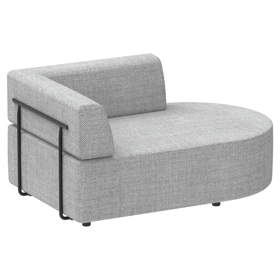 Corner seat with an upholstered seat and back on a black base and epoxy coated frame with circular end. (Right)