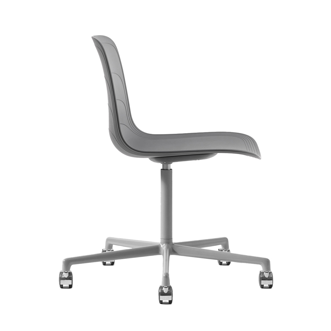 360° swivel chair with recycled polypropylene seat on a recycled aluminium 5 foot base with casters. Tested to 360 lbs weight load.
