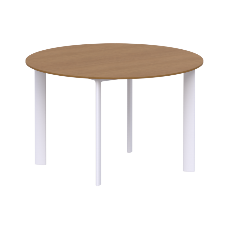 100cm / 39″ diameter dining height table on epoxy painted frame.
