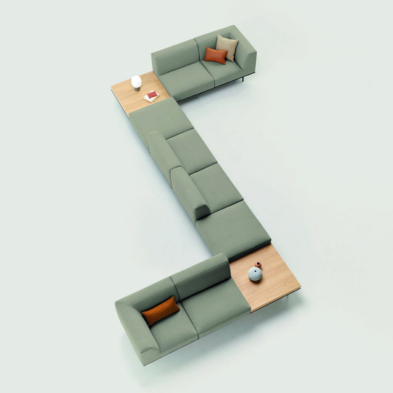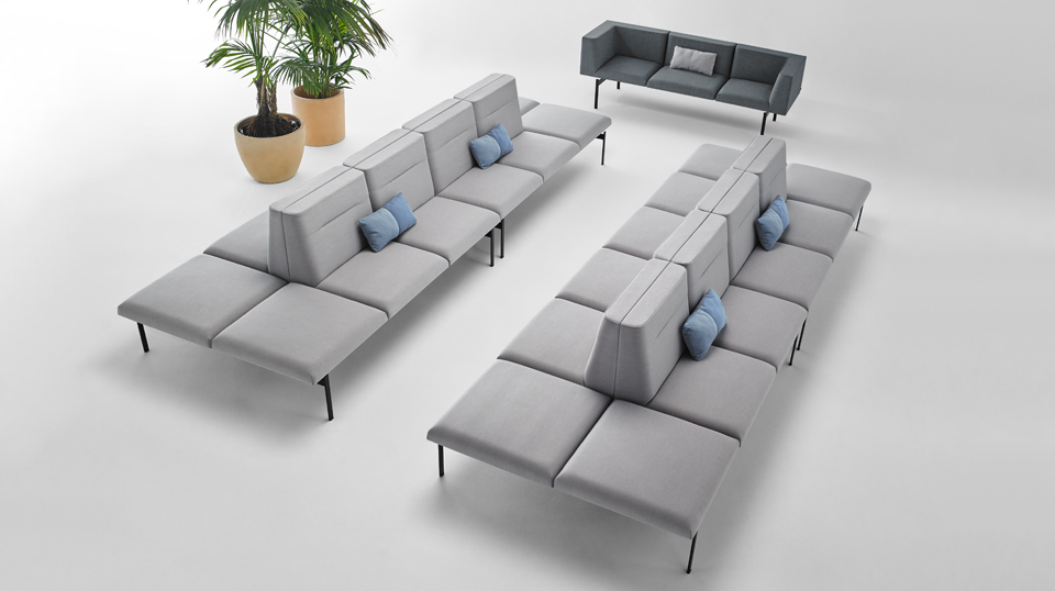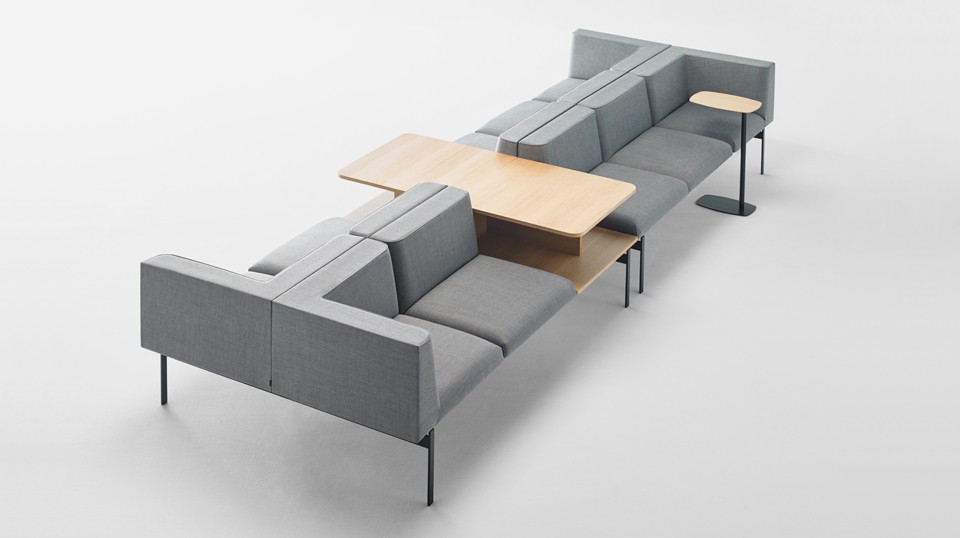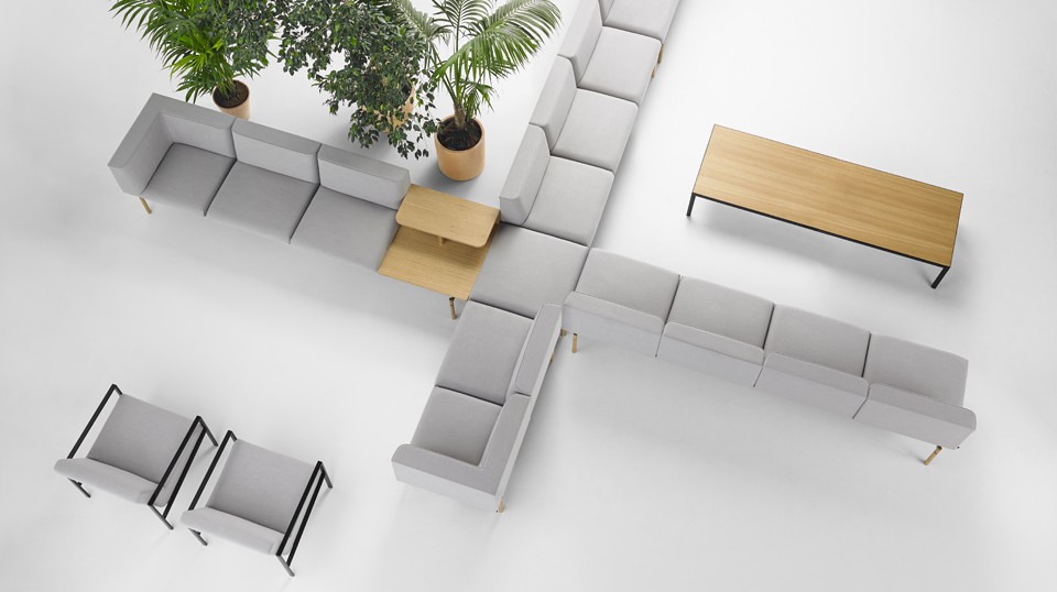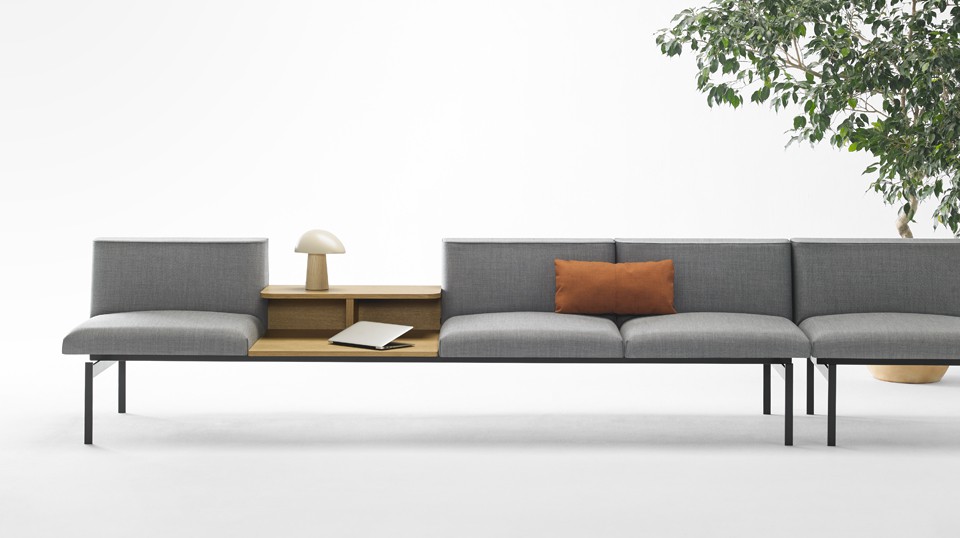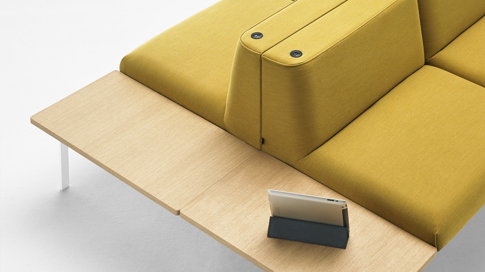 Four seater steel frame (seats to be specified separately), finished in black or white epoxy paint. The frame connects to steel or solid Oak legs (to be specified separately), whilst optional double outlet extensions are also available.