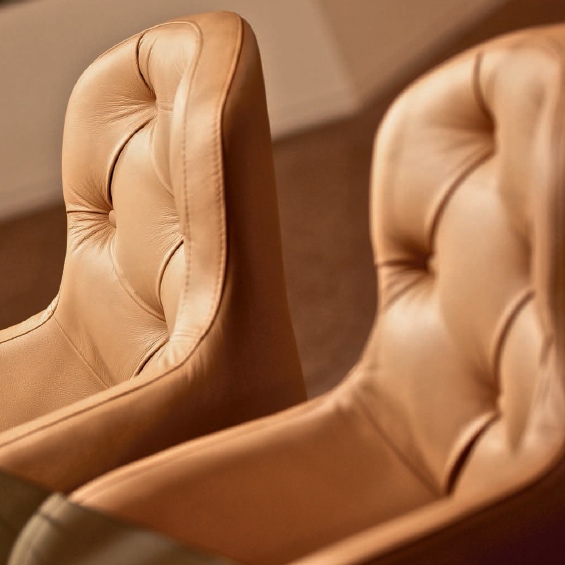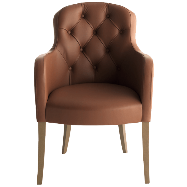 Armchair, fully upholstered with button detail. Beech frame. This product has an extended lead time.