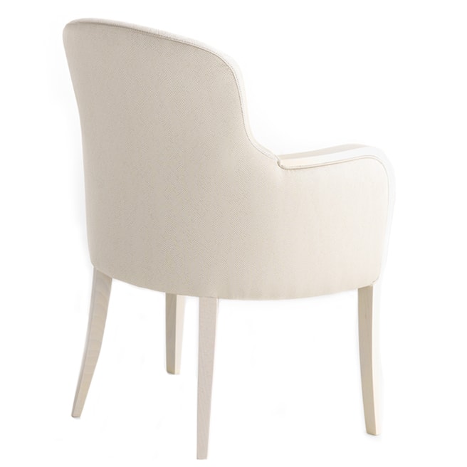 Armchair, fully upholstered with wooden arms detailing. Indoor use only.