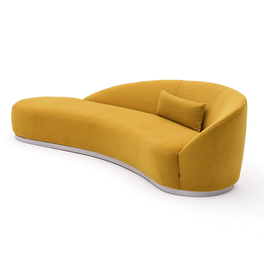 Fully upholstered sofa with rounded black colored plastic feet. This product has an extended lead time.