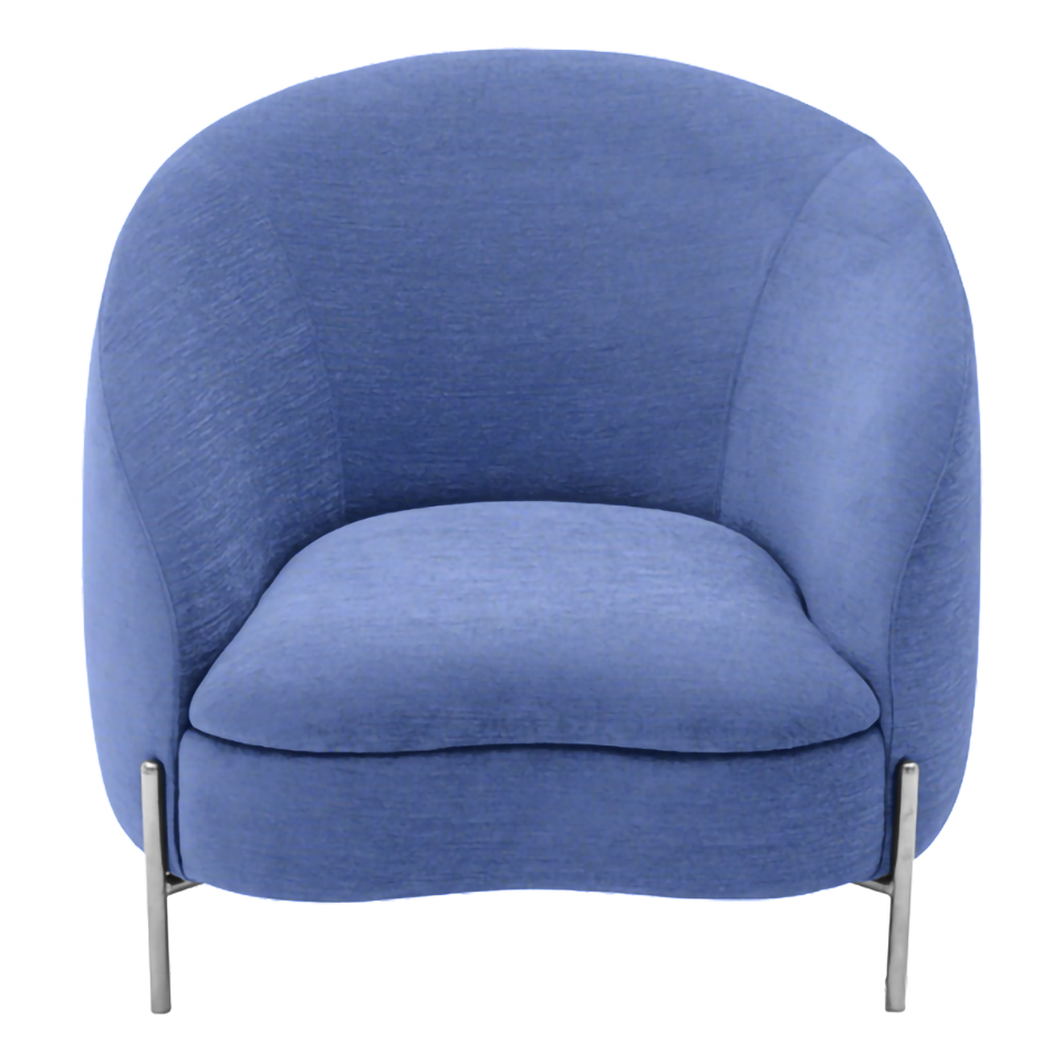 Lounge chair with plywood seat frame. Back made out of molded foam. Seat upholstered in two parts. Back upholstered onto the frame. With round metal legs.