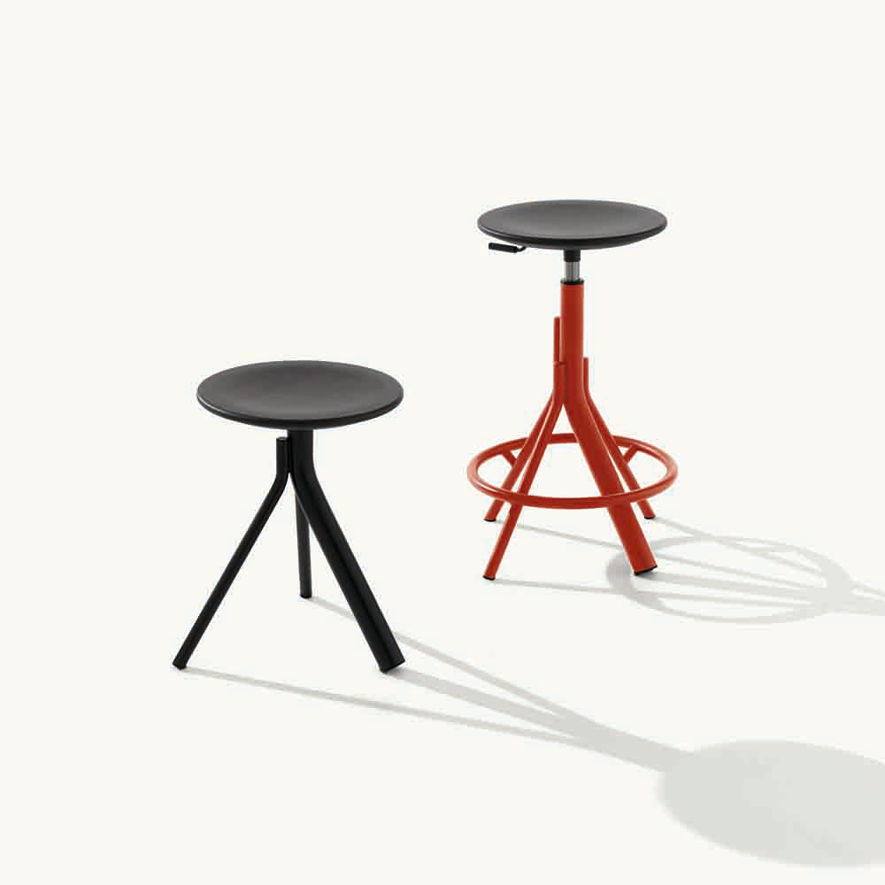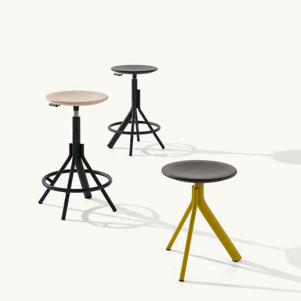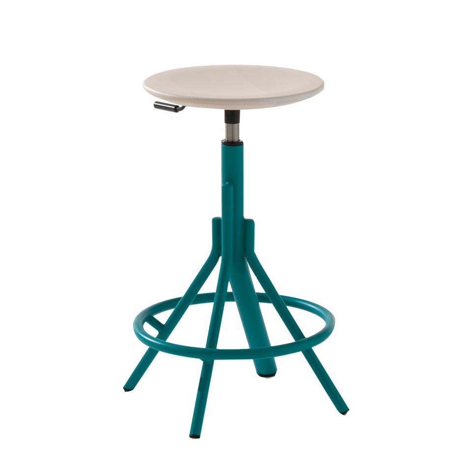 Adjustable height stool with swivel seat in Ash wood on a steel frame
