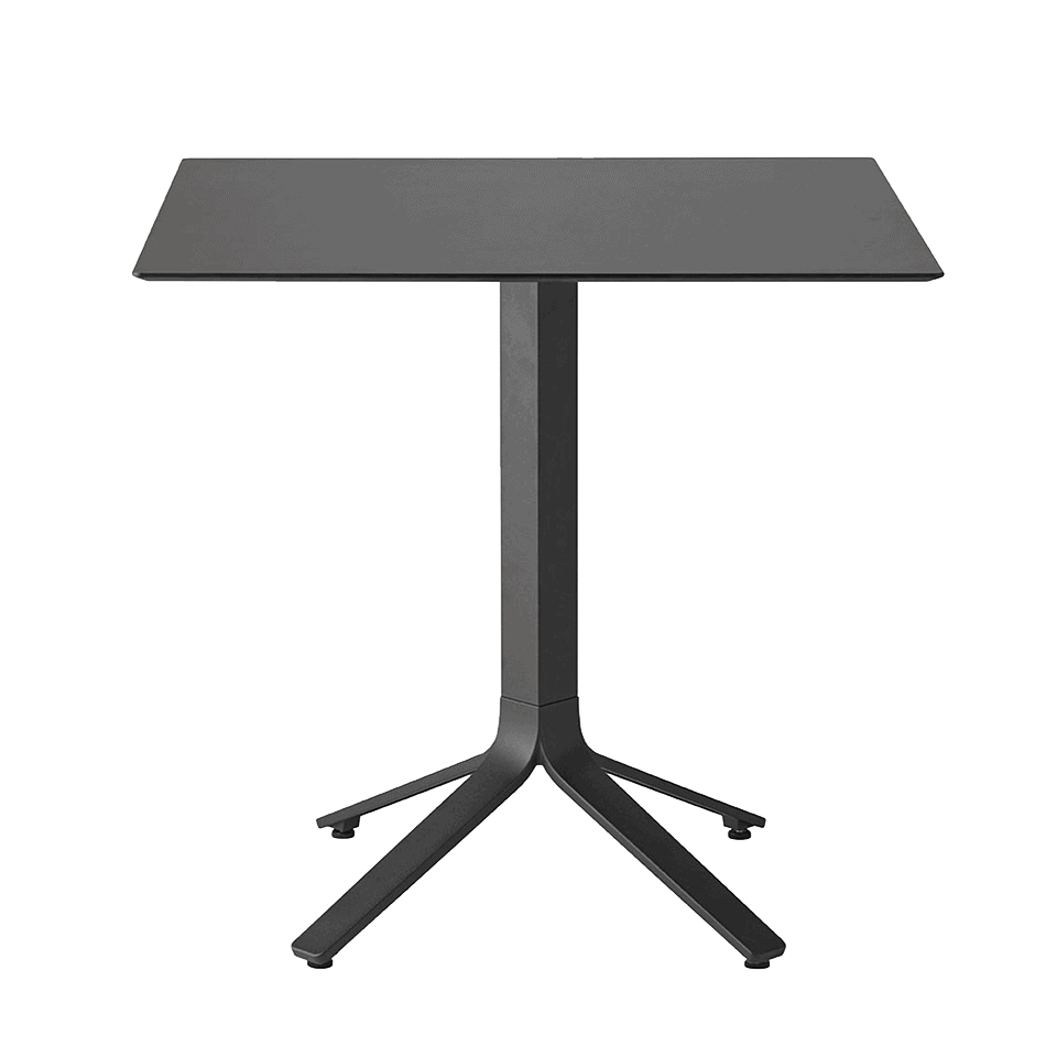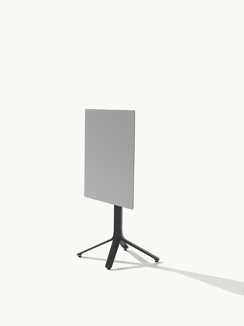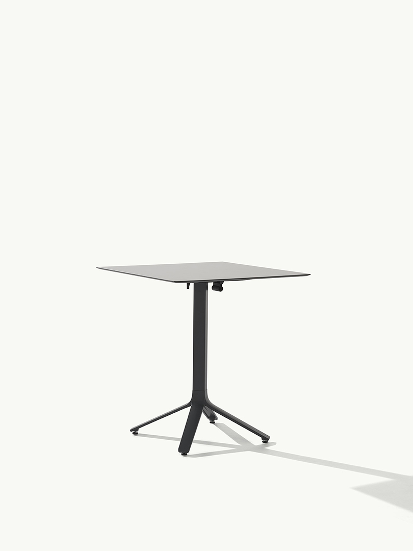 Dining height table base with folding mechanism for tops up to 90cm / 36″ diameter or 80cm x 80cm / 32″ x 32″ square. Painted VR frame or Polished Aluminum. Note: Polished Aluminum frame is not suitable for outdoor use.