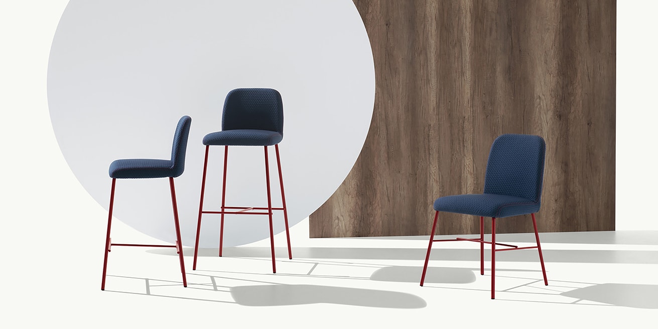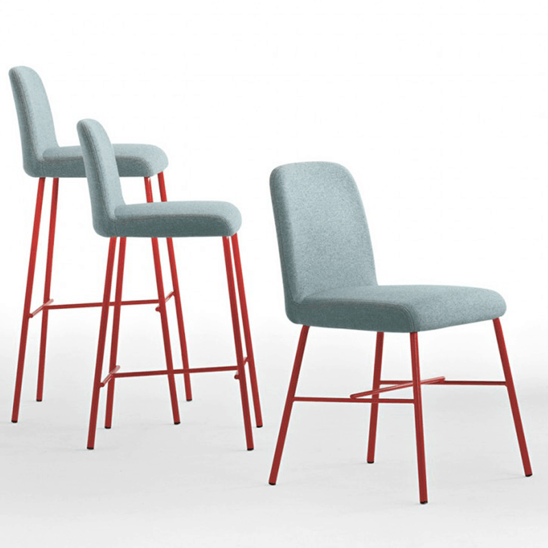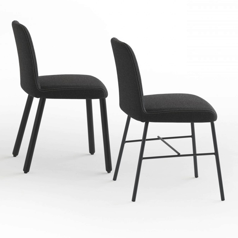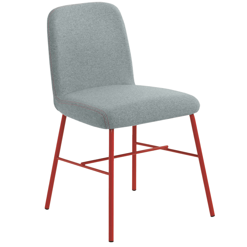 Fully upholstered side chair on steel base. With contrast stitching in red or rope color.