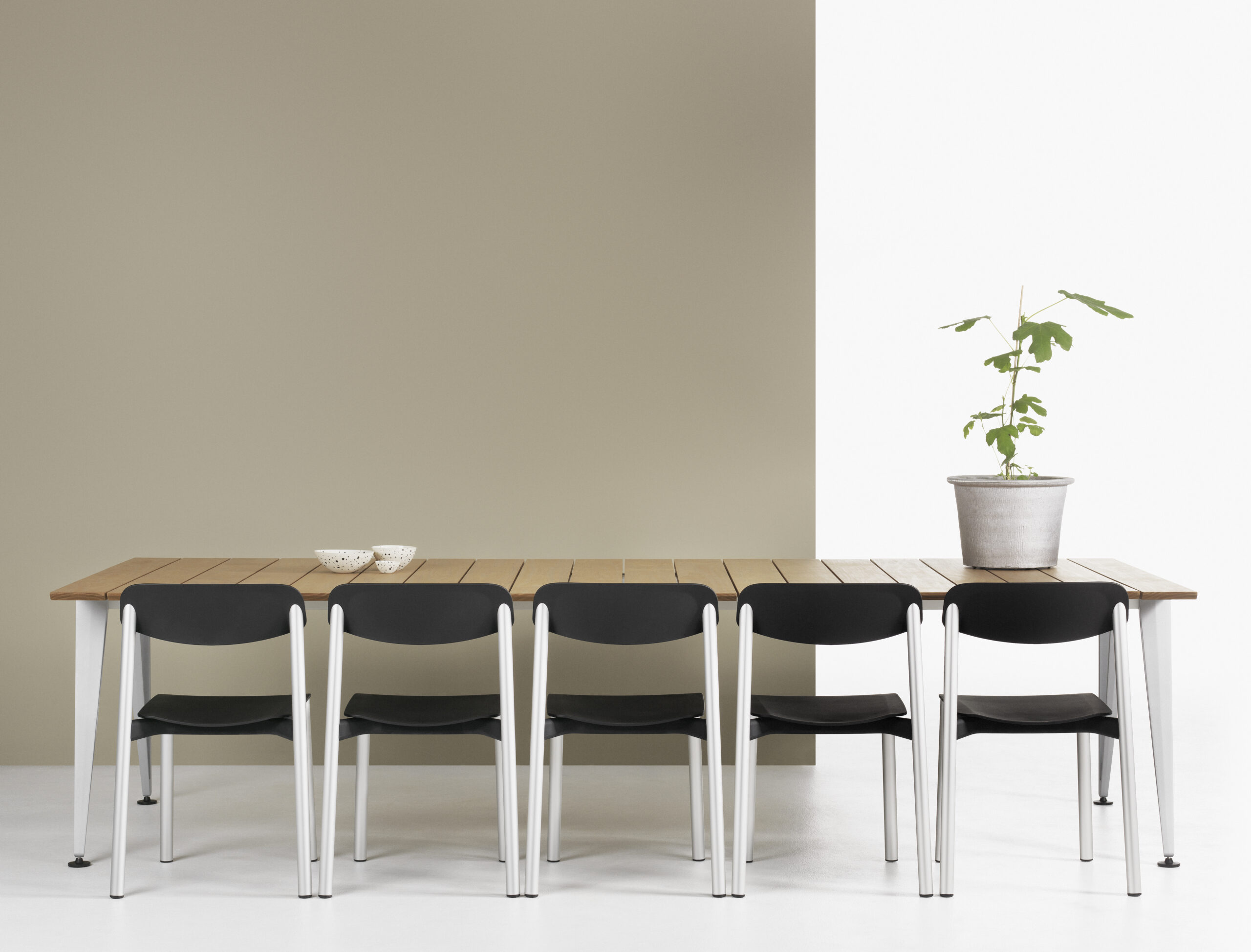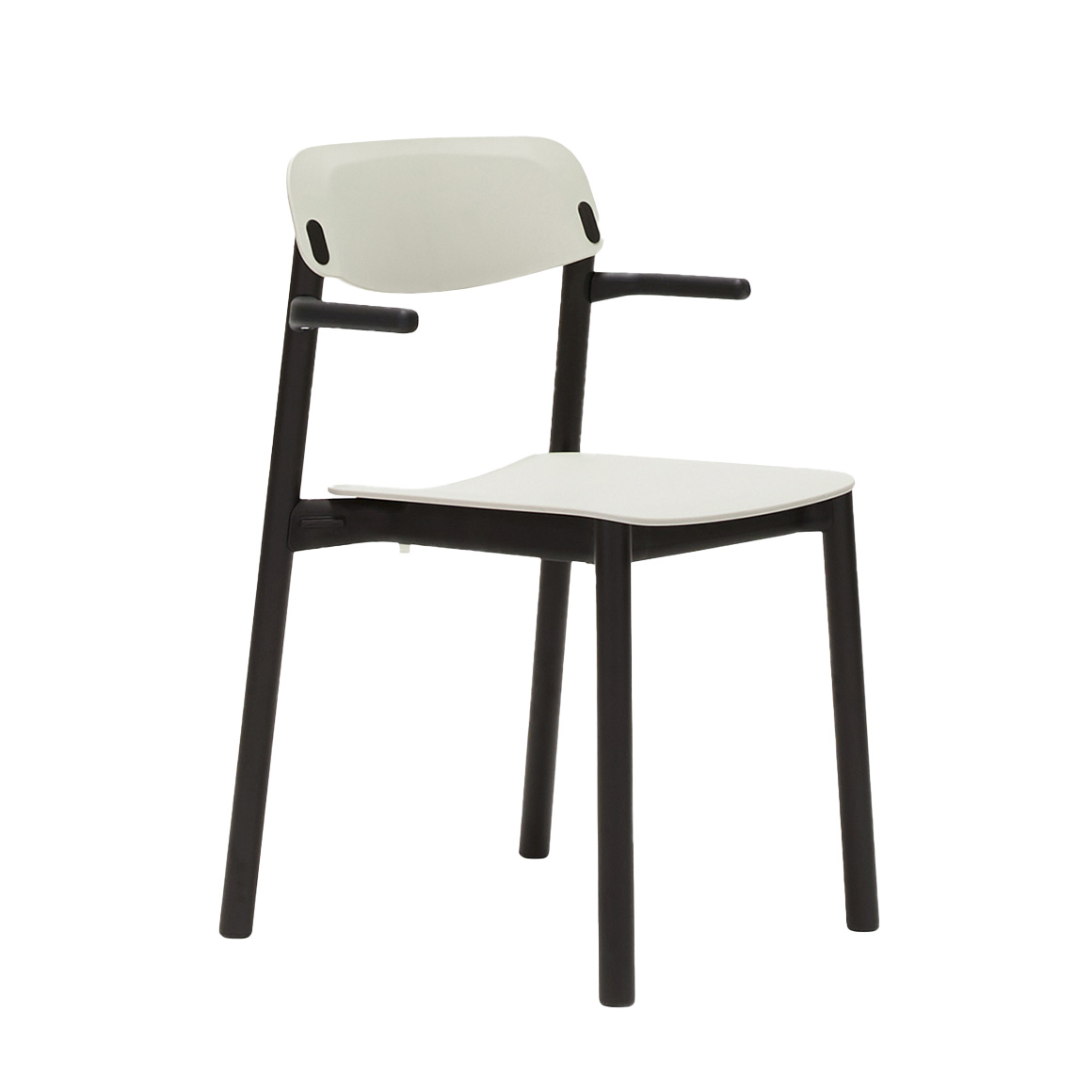 Stackable sidechair with epoxy powdercoat frame and seat & back in polypropylene. Arms in polyamide