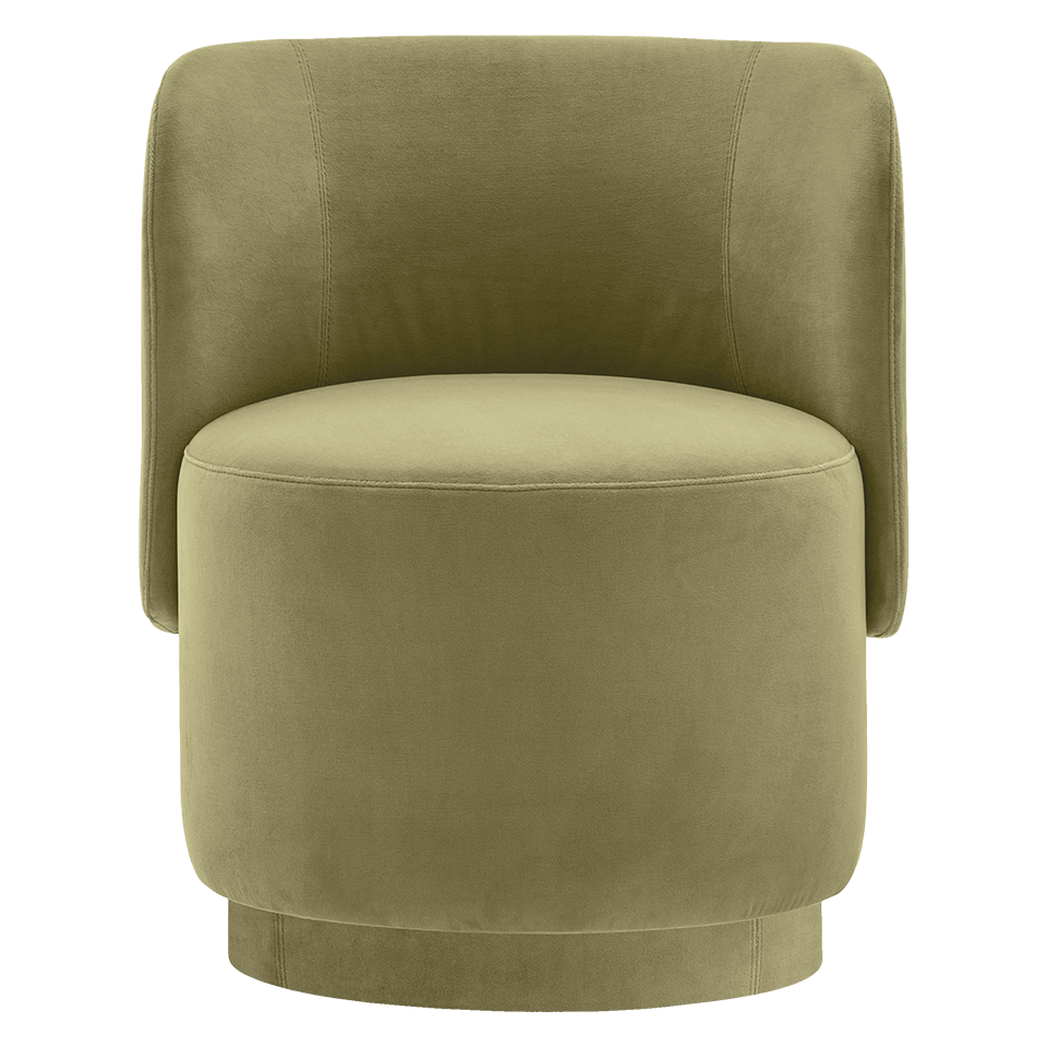 Tablet round side chair, upholstered plywood frame. Plinth fully upholstered.