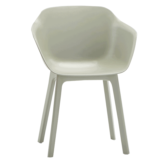 Armchair with polypropylene shell on a four-legged plastic frame. Greenguard Certified.