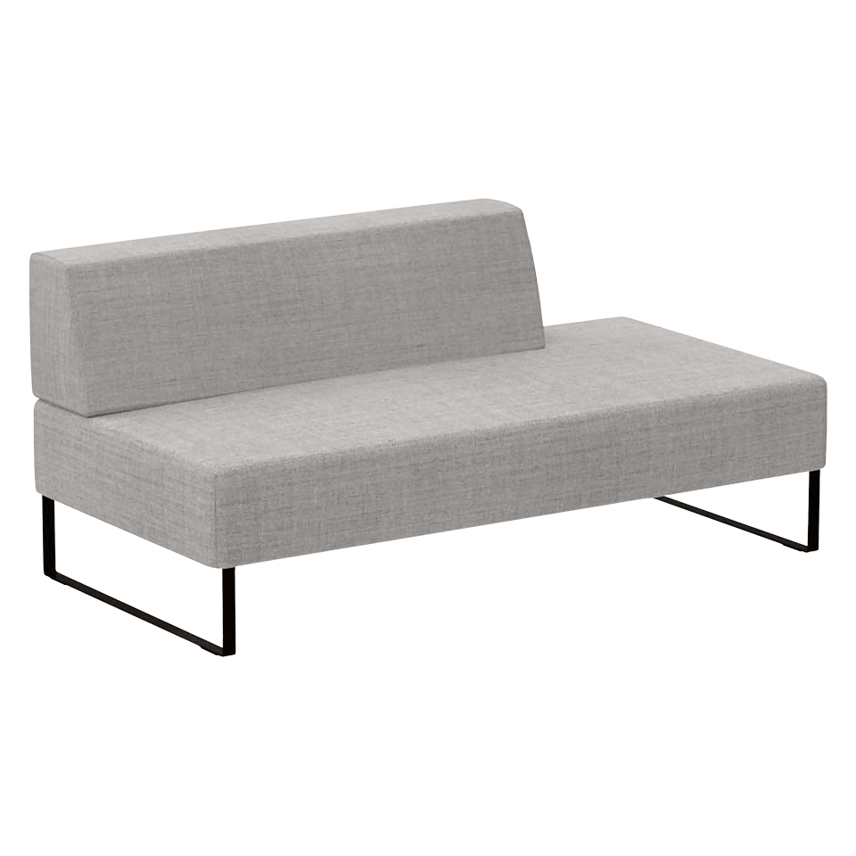 Upholstered modular seat W.63″ with right backrest W.47.2″ and steel plate legs.