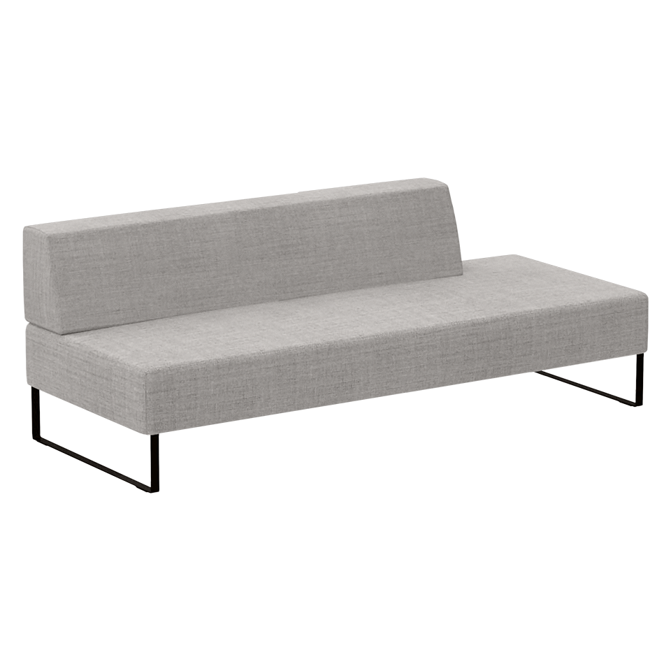 Upholstered modular seat W.78.7″ with right backrest W.47.2″ and steel plate legs.