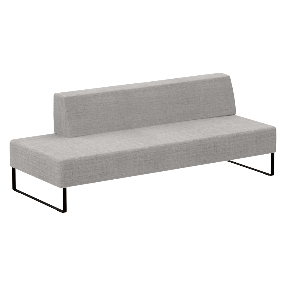 Upholstered modular seat W.78.7″ with left backrest W.47.2″ and steel plate legs.