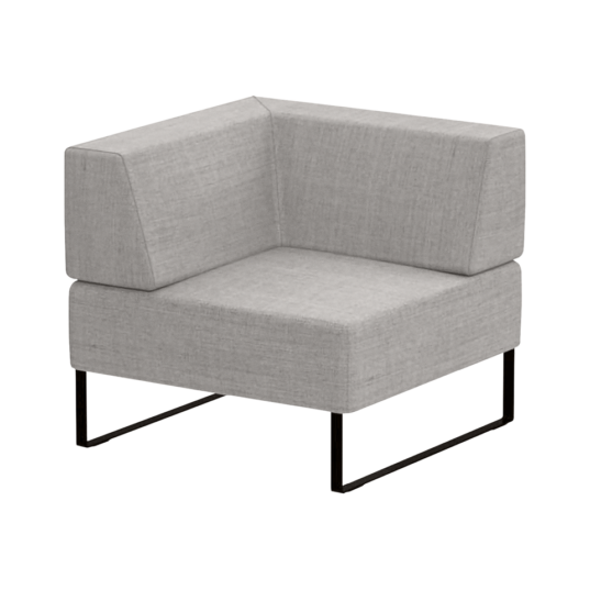 Upholstered seat with (Left) corner backrest measuring 31.5″ x 31.5″ and steel plate legs.