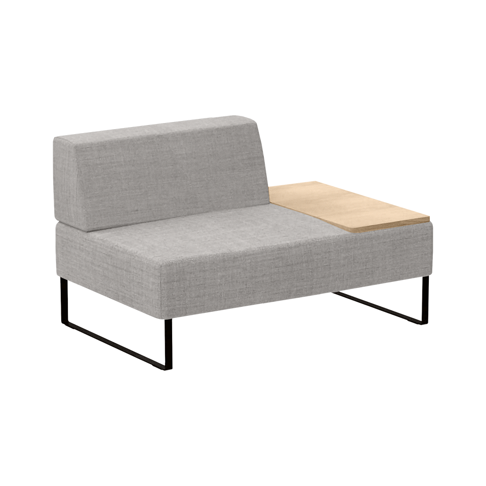 Upholstered modular seat W.47.2″ with right side backrest W.31.5″, left table W.15.7″ and steel plate legs.