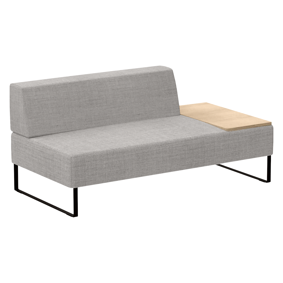 Upholstered modular seat W.63″ with right side backrest W.47.2″, left table W.15.7″ and steel plate legs.