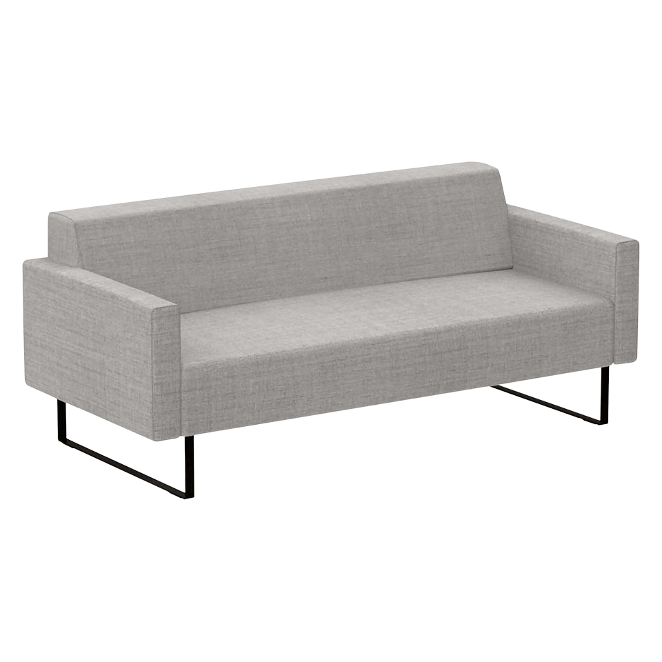 Upholstered sofa W.70.9″ with arms W.3.9″ and steel plate legs.