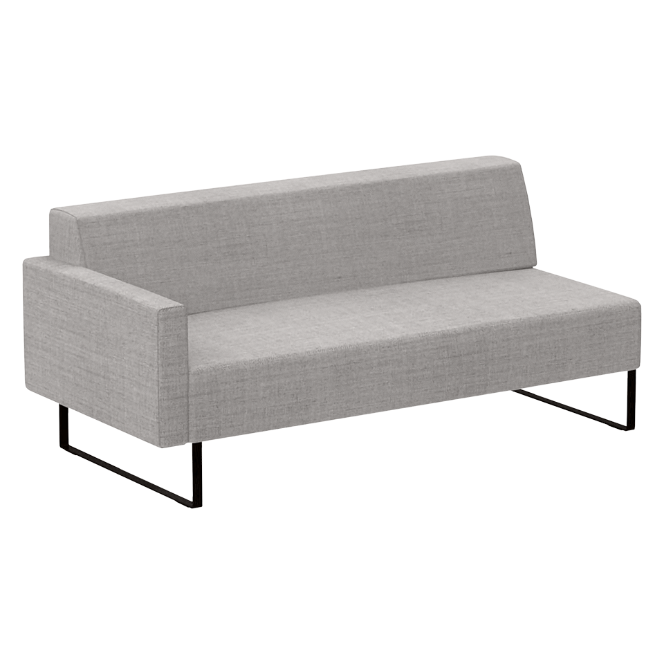 Upholstered sofa W.66.9″ with right arm W.3.9″ and steel plate legs.
